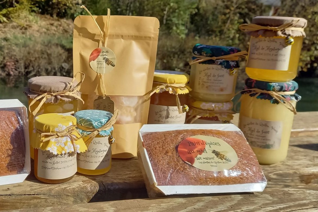 Delphine en Stéphane bieden in Le Clapier-d’Auris, vlakbij Bourg-d’Oisans, honing en ambachtelijke bijproducten aan: snoepjes, peperkoek en kaarsen van bijenwas, het resultaat van hun passie voor de bijenteelt.